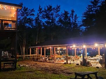 BDBC Has more than 12,000 square feet of covered and indoor Gathering space. Nestled in the heart of the northern Michigan, Black Dog Base Camp is surrounded by stunning natural beauty. Whether you're a one person adventure or planning a 100 person celebration, BDBC has you covered.